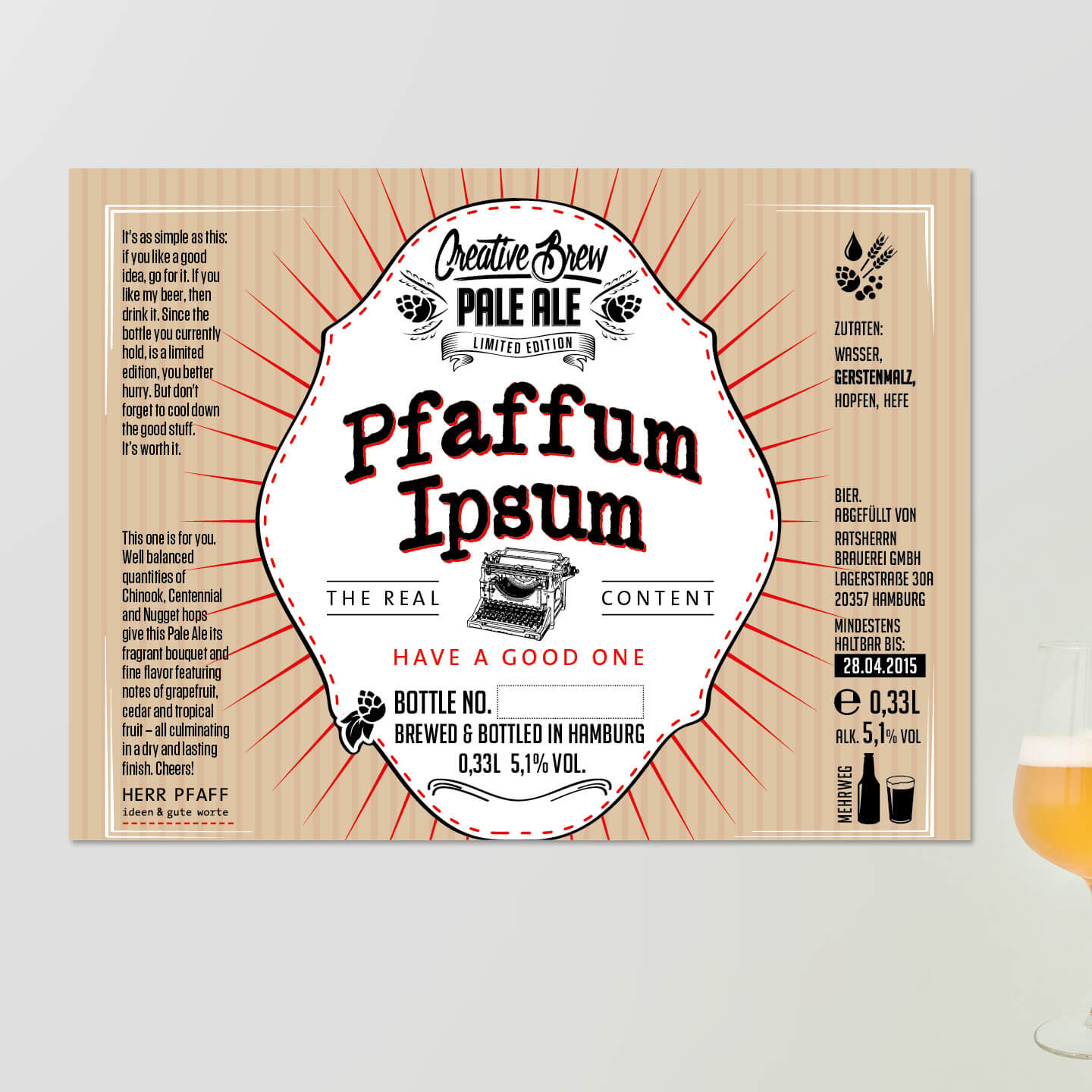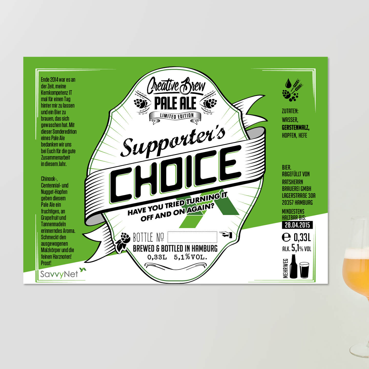 Ein eigenes Bier! Gemeinsam mit Geschäftspartnern entstand ein eigenes Pale Ale in der Ratsherrn Mikrobrauerei. Und jeder bekam sein eigenes Etikett für die Limited Edition: IT Support von Savvynet, die Medienproduktion Lex Lumen, Text von Herr Pfaff und nordwärts.